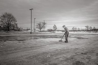 Keywords: scavenge sweep cleaning man street sweeping broom concrete lot
