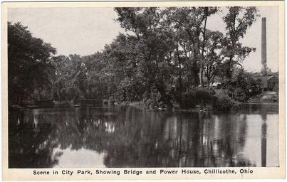 MAKE A MEME View Large Image Description on card: Scene in City Park, Showing Bridge and Power House, Chillicothe, Ohio Published by: Auburn Post Card Manufacturing Co. Unused. Publisher Note: The Auburn Post Card Mfg. Company published postcards from 1913-1929. Source ...