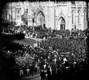 | Keywords: lincoln funeral lincolnfuneral civil war civilwar president lincoln new york city funeral presidentlincolnnewyorkcityfuneral 111-b-2172 111b2172 scene in front of church sceneinfrontofchurch blackandwhite monochrome people crowd black and white NARA Title: Scene in Front of Church [Crowd in front of Grace Church at 10th & Broadway NY, a pause in the Lincoln Funeral procession working its way up Broadway from City Hall.] Date: April 25, 1865 Notes on File: 5788 x 5180 pixels - 1600 dpi scan of the bottom left corner of NARA 111-B-2172 (Munson Negative) courtesy of the National Archives and Records Administration (NARA) - the original TIF file was 57 megs which I converted into a jpeg in Photoshop at the highest quality setting to reduce to 13 megs. The full size jpeg file can be downloaded here: www.flickr.com/photos/110677094@N05/13884821679/sizes/o/ -PT 4/30/14 NARA Title: Scene in Front of Church [Crowd in front of Grace Church at 10th & Broadway NY, a pause in the Lincoln Funeral procession working its way up Broadway from City Hall.] Date: April 25, 1865 Notes on File: 5788 x 5180 pixels - 1600 dpi scan of the bottom left corner of NARA 111-B-2172 (Munson Negative) courtesy of the National Archives and Records Administration (NARA) - the original TIF file was 57 megs which I converted into a jpeg in Photoshop at the highest quality setting to reduce to 13 megs. The full size jpeg file can be downloaded here: www.flickr.com/photos/110677094@N05/13884821679/sizes/o/ -PT 4/30/14 |