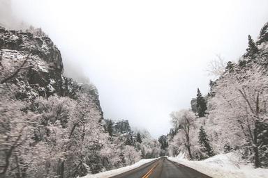 Keywords: winter cold snow ice road street outdoor fog public domain publicdomain mountainside landscape cliff crag hill License: Public Domain Dedication (CC0) Source: Unsplash License: Public Domain Dedication (CC0) Source: Unsplash