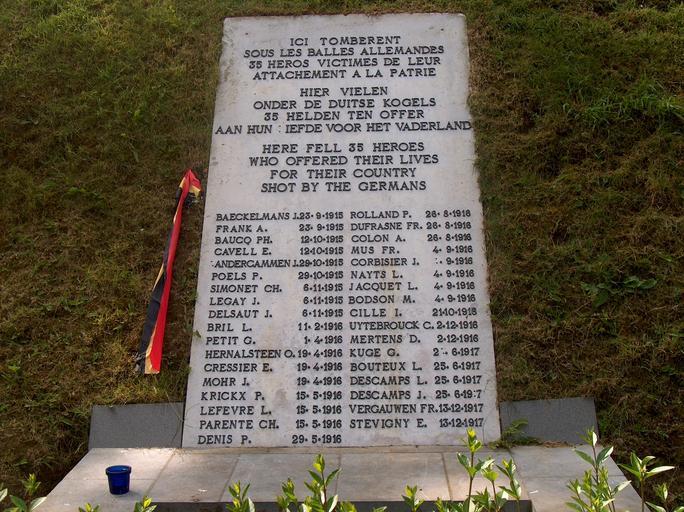 Keywords: Schaerbeek Rue Colonel Bourg Enclos des fusillés 02.jpg rue Colonel Bourg à Schaerbeek Bruxelles Belgique Own Varech 2009-06-12 Enclos des fusillés Bruxelles Plaques in Schaerbeek Monuments and memorials to Edith Cavell Gabrielle Petit Philippe Baucq memorial Names on memorials |