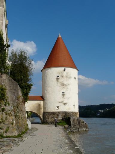 Keywords: schaiblingsturm tower landmark passau old town innkai inn river water cone shape round tower spitz helmet middle ages town fortifications architecture building