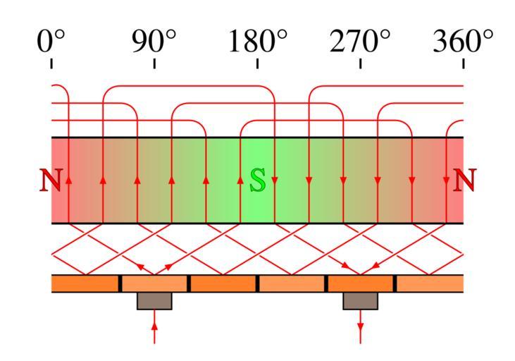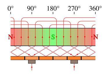 Keywords: Schema Ankerwicklung.svg de Ankerwicklung mit Wellenwicklung als Wicklungsschema samt Stromfluss und Magnetisierung 2011-12-27 own http //www energie ch/wicklungsarten-von-gleichstrommaschinen energie ch Stündle Inkscape cc-zero Uploaded with UploadWizard SVG electric motors |