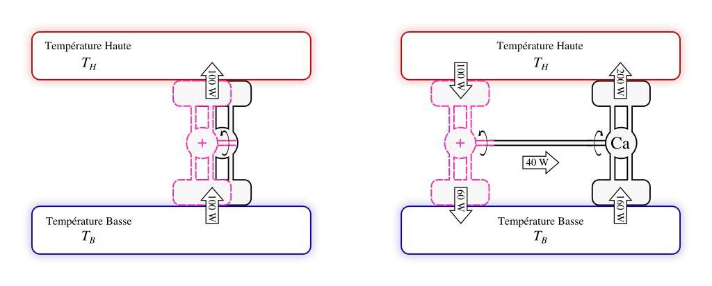 | Keywords: Schéma thermodynamique moteur impossible.svg fr Schéma thermodynamique d ™une machine thermique impossible Raisonnement utilisé par Sadi Carnot une machine en rose qui aurait une efficacité plus grande qu ™une machine réversible pourrait être usiliée en combinaison avec celle-ci à gauche Il en résulterait un transfert de chaleur depuis une basse température vers une haute température ce qui contredit le second principe dont il a admis l ™existence 2013 own Olivier Cleynen other versions cc-zero Uploaded with UploadWizard Heat machines SVG diagrams in French SVG physics |