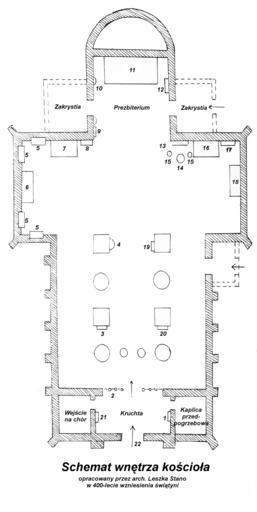 Keywords: Schemat wnętrza kościoła sw Mateusza w Pabianicach.JPG en Picture schedule is stated in the church porch in the display case information My own photo Scheme made by the architect Leszek Stano and given to the parish of St Matthew in 1988 as part of the information about the history of the parish Schematic probably the first time published on the web pl Zdjęcie schematu zamieszczonego w kruchcie kościelnej w gablocie informacyjnej Fotografia autorstwa własnego Schemat wykonany przez arch Leszka Stano i podarowany parafii św Mateusza w 1988 roku jako cześć informacji o historii parafii Schemat prawdopodobnie po raz pierwszy publikowany w sieci Fotografia tablicy informacyjnej z kruchty kościoła św Mateusza autor schematu arch Leszek Stano prawdopodobnie 1988 rok PD-Art Saints Matthew and Lawrence church in Pabianice |