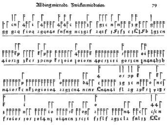 | Keywords: Schlick-all-ding-mit-radt-facsimile.png First bars of Arnolt Schlick's All Ding mit radt facsimile From Tabulaturen etlicher lobgesang und lidlein uff die orgeln un lauten Mainz 1512 Tabulaturen etlicher lobgesang und lidlein uff die orgeln un lauten Ugrino/Abt Verlag 1924 2009-06-02 Arnolt Schlick composer Peter Schoeffer original publisher PD-old Arnolt Schlick |