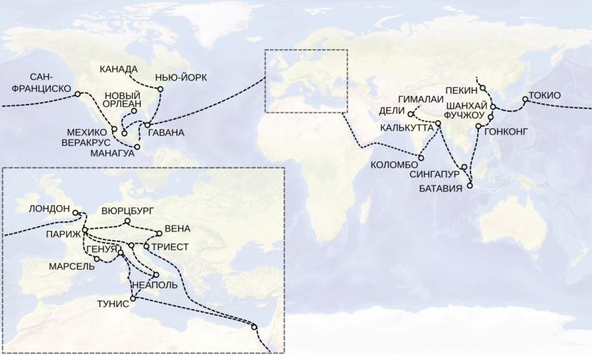 | Keywords: Schlimann Reise 1000x600px.svg Map of the voyages of Heinrich Schliemann 1864 “1866 Ð Ð°Ñ ÑˆÑ ÑƒÑ‚Ñ‹ поездок Ð“ÐµÐ½Ñ Ð¸Ñ…Ð° Шлимана в 1864 ”1866 годы own 2014-03-01 Retired electrician; map base Natural Earth http //www naturalearthdata com/downloads/50m-raster-data/50m-natural-earth-1/ http //www naturalearthdata com/about/ All versions of Natural Earth raster + vector map data found on this website are in the public domain Heinrich Schliemann Circumnavigation Cc-zero |