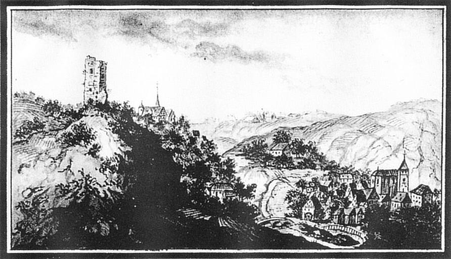 | Keywords: Schloss Jagstberg und Mulfingen 1799.jpg Die Ruine der Burg Jagstberg über Mulfingen Walther-Gerd Fleck Burg und Schloss Ebersberg in Burgen und Schlösser Zeitschrift für Burgenforschung und Denkmalpflege vol 44 no 4 2003 0007-6201 p 217 1799 author PD-old-100 Buildings in Mulfingen Castles in Hohenlohekreis |