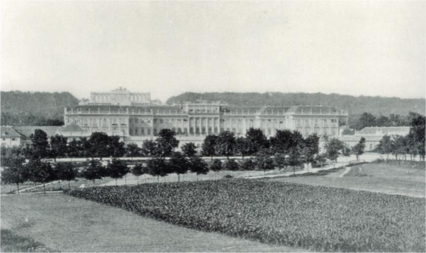 Keywords: Schönbrunn front old.png Vorderansicht des Schlosses Schönbrunn mit der Gloriette im Hintergrund Front view of Schönbrunn palace in Vienna Helfried Seemann Christian Lunzer Hrsg Schönbrunn 1860 - 1920 - Das kaiserliche Lustschloss die kaiserliche Familie der Hofstaat Schloss Park und Tiergarten in historischen Photografien ALBUM Verlag für Photografie Wien 2006 ISBN 3 85164 158 2 1875 Creator Michael Frankenstein PD-old Palace of Schönbrunn Gloriette Schönbrunn Historical images of Hietzing Black and white photographs of buildings Michael Frankenstein 1875 in Vienna History of the palace and gardens of Schönbrunn |