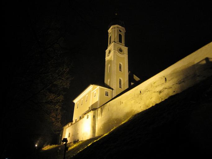 Keywords: schongau germany ghost church city wall monastery monastery church night wall historically lech church building architecture bavaria upper bavaria church steeples steeple spire tower christianity faith