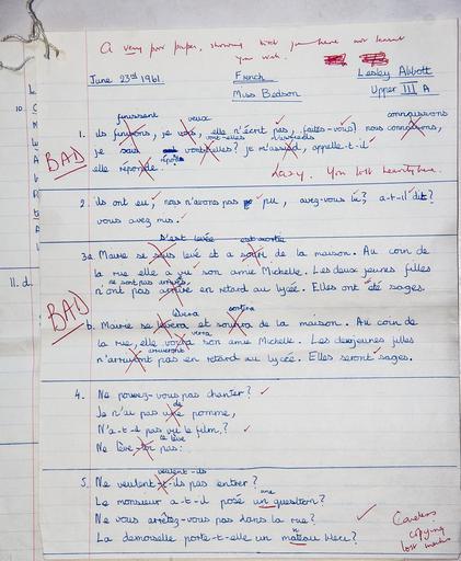 Keywords: school exam french bad wrong fail teacher education learning 1960s england