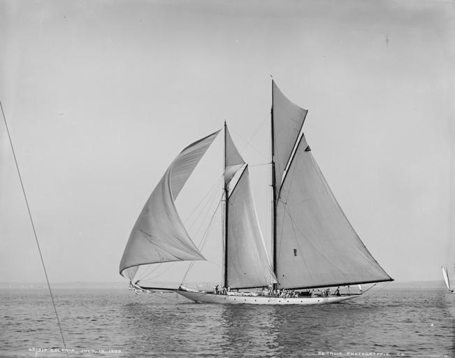 | Keywords: Schooner Colonia-04.jpg Larchmont Yacht Club Commodore Clarence Ashley Postley's schooner Colonia designed and built as a sloop in 1893 by Herreshoff to be a candidate in the 1893 America's Cup rerigged as a schooner under the supervision of Archibald Cary Smith who fitted her with a centerboard She is pictured here in a regatta the Larchmont racing week where she placed third on corrected time in the fleet rankings but beat her main opponent Ariel in the match race ranking http //query nytimes com/mem/archive-free/pdf res 9C00E6DB1E3DE433A25751C2A9649D94649ED7CF New York Times - Colonia as a schooner http //query nytimes com/mem/archive-free/pdf res 9B06E5DE1538E433A25755C1A9619C94689ED7CF New York Times - Larchmont Club's races LOC-image det 4a15534 Creator John S Johnston 1899-07-15 PD-Detroit Boats under sail Colonia ship 1893 as schooner Photographs by John S Johnston Black and white photographs |