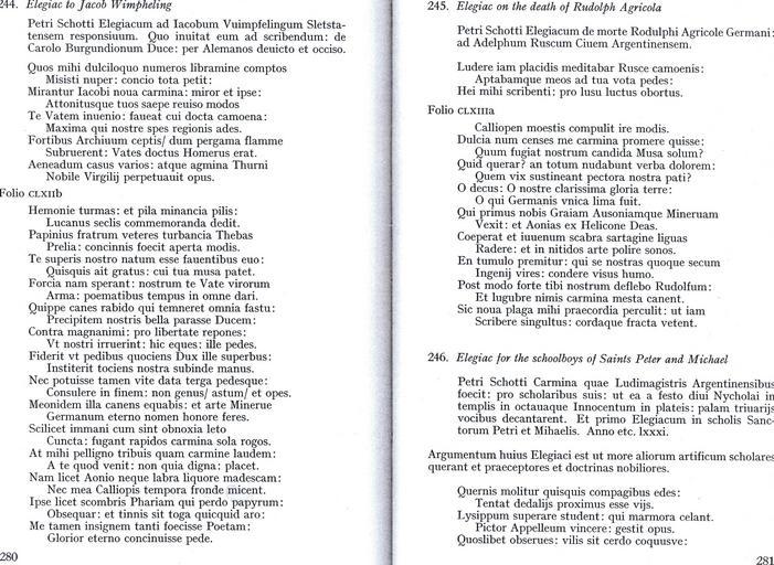 Keywords: Schott an wimpfeling.jpg Elegiac to Jakob Wimpfeling The Works of Peter Schott 1460-1490 Ed Murray A and Marian L Cowie vol 1 Chapel Hill 1963 S 280 ~ 1477 Jakob Wimpfeling PD-old Jakob Wimpfeling Peter Schott the younger