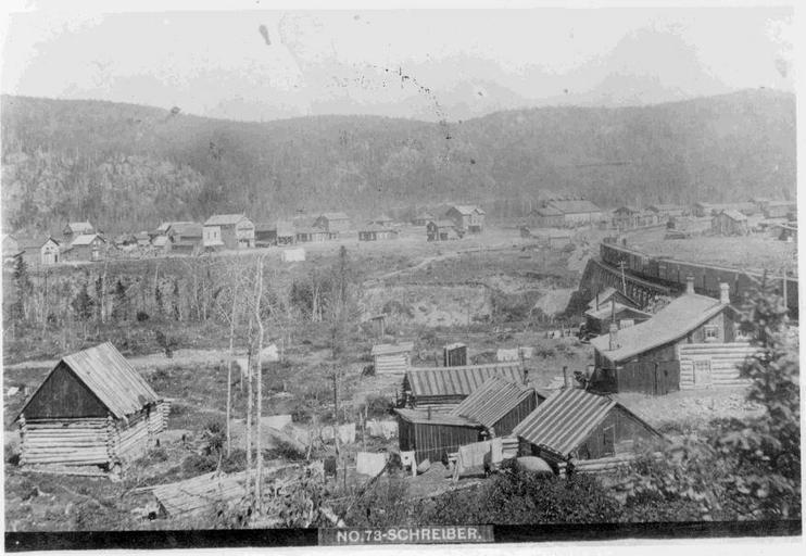 | Keywords: schreiber railway trains wooden bridge woodenbridge log cabins logcabins cabins residential forest canadian pacific railway canadianpacificrailway cpr cp rail cprail ontario canada history blackandwhite monochrome outdoor black and white Date: 1884 Description: This photograph shows the village of Schreiber, ON in 1884. Originally known as Isbester's Landing (named after a railway contractor), the village was renamed for Sir Collingwood Schreiber the year before this photograph was taken. Schreiber was a noted government engineer whose recommendation led the federal government to approve the final loan of funds to complete the Canadian Pacific Railway, a part of which was was still under construction in the vicinity of the town. At the time, railway facilities provided residents the only means of transportation to the outside world. It would remain so until the completion of the Nipigon-Schreiber section of the Trans-Canada Highway in September 1937, Accession No.: 972.1.59 Date: 1884 Description: This photograph shows the village of Schreiber, ON in 1884. Originally known as Isbester's Landing (named after a railway contractor), the village was renamed for Sir Collingwood Schreiber the year before this photograph was taken. Schreiber was a noted government engineer whose recommendation led the federal government to approve the final loan of funds to complete the Canadian Pacific Railway, a part of which was was still under construction in the vicinity of the town. At the time, railway facilities provided residents the only means of transportation to the outside world. It would remain so until the completion of the Nipigon-Schreiber section of the Trans-Canada Highway in September 1937, Accession No.: 972.1.59 |