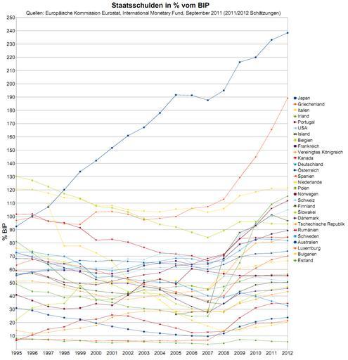 | Keywords: Schuldenquote Europa.png  de Schuldenquote ausgewählter vorwiegend europäischer Länder Aktuelle Daten von September 2011 2011-11-17 own Ben776 cc-zero Original upload log page de wikipedia Schuldenquote_Europa PNG 2011-11-17 14 14 Ben776 996×1031× 163430 bytes <nowiki>Aktualisiert und um zusätzliche Länder und Prognose erweitert </nowiki> 2011-07-09 02 47 Ben776 691×808× 111961 bytes <nowiki> Information Schuldenquote europäischer Länder in BIP selbst erstellt; Daten von http //epp eurostat ec europa eu/portal/page/portal/statistics/search_database ich 09 0</nowiki> Uploaded with UploadWizard Debt-to-GDP ratio |