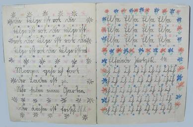 Keywords: Schulheft 1929 Berlin SlgKiJu.jpg Sammlung Kindheit und Jugend Stiftung Stadtmuseum Berlin <br /> Schulheft mit Schreibübungen 1929 <br /><br /> Die Tulpe ist rot Morgen gehe ich fort Der Laden ist zu Wir haben einen Garten Der Kuchen ist frisch Elsa Elfriede Jurtzik ch Ch Ch Ch Ch Ch Ch Ch Ch own Photo May 2008 Photo Andreas Praefcke Object ineligible for copyright; Photo Own work all rights released Public domain Sammlung Kindheit und Jugend Berlin Exercise book Sütterlin 1929 documents