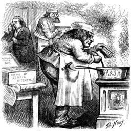 Keywords: Schurz and Sumner Cooking.png en Charles Sumner at the stove warming up some old hash while fellow cook Carl Schurz looks on and John A Logan looks on and holds his nose Harper's Weekly June 22 1872 p 496 Creator Thomas Nast 1872-06-22 Caption The old hash warmed up again PD-old-100 1872 cartoons 1870s political cartoons of the United States Caricatures of Carl Schurz Thomas Nast John A Logan Charles Sumner Cooking in art |