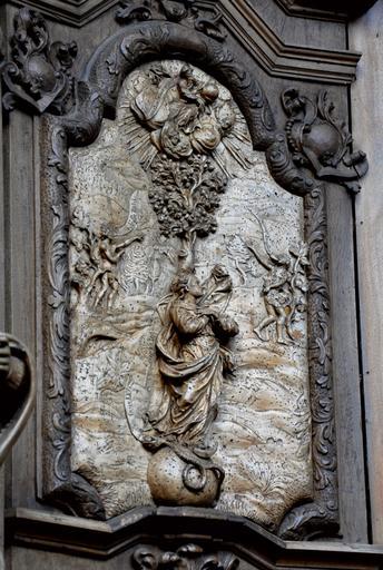 Keywords: Schussenried Chorgestühl 01 Immaculata.jpg Bad Schussenried Pfarrkirche St Magnus ehemalige Klosterkirche ; Chorgestühl von Georg Anton Machein und Werkstatt 1715 “1717<br /> Bibelrelief Sündenfall mit Verheißung des Erlösers mit Immaculata own own photograph 2011-09 Photo Andreas Praefcke Chorgestühl Kloster Schussenried Photos by User AndreasPraefcke Woman of the Apocalypse Reliefs of Adam and Eve Speech balloons |