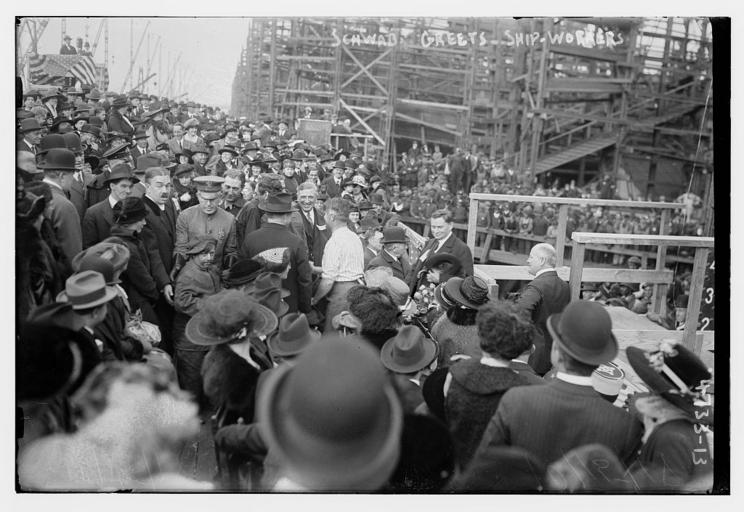 | Keywords: Schwab greets ship workers (LOC) (29484319321).jpg Bain News Service publisher Schwab greets ship workers between ca 1915 and ca 1920 1 negative glass ; 5 x 7 in or smaller Notes Title from data provided by the Bain News Service on the negative Forms part of George Grantham Bain Collection Library of Congress Format Glass negatives Rights Info No known restrictions on publication Repository Library of Congress Prints and Photographs Division Washington D C 20540 USA http //hdl loc gov/loc pnp/pp print hdl loc gov/loc pnp/pp print General information about the Bain Collection is available at http //hdl loc gov/loc pnp/pp ggbain hdl loc gov/loc pnp/pp ggbain Higher resolution image is available Persistent URL http //hdl loc gov/loc pnp/ggbain 27687 hdl loc gov/loc pnp/ggbain 27687 Call Number LC-B2- 4733-13 https //www flickr com/photos/library_of_congress/29484319321/ Schwab greets ship workers LOC LOC-image ggbain 27687 https //www flickr com/people/8623220 N02 The Library of Congress http //www loc gov/rr/print/195_copr html noknown The Library of Congress Flickr Commons PD-Bain The Library of Congress https //flickr com/photos/8623220 N02/29484319321 2016-10-03 02 34 34 pd Uncategorized 2016 December 5 |