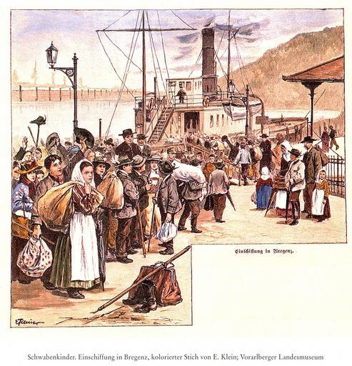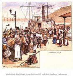 Keywords: Schwabenkinder.jpg Schwabenkinder Einschiffung in Bregenz kolorierter Stich von E Klein Vorarlberger Landesmuseum; Quelle Vorarlberg Archiv Katalog Nr VA01046 uploaded by böhringer friedrich 1895 or before E Klein thumb left File Die Gartenlaube 1895 b 283 jpg PD-old Lake Constance in art Collections of Vorarlberg Museum History of Bregenz Schwabenkinder |