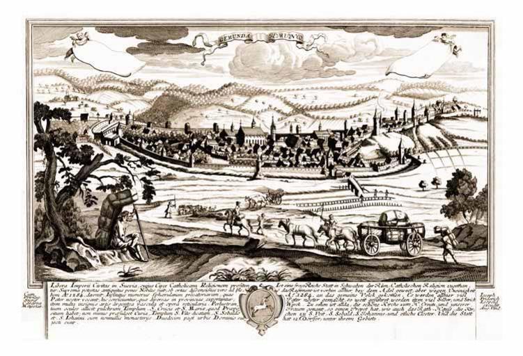 Keywords: Schwaebisch Gmuend 1750.jpg Schwäbisch Gmünd Kupferstich von Joseph Friedrich und Johann Christian Leopold Augsburg 1750 PD-old Source http //www historic-maps de/ Historic views of Schwäbisch Gmünd Johann Christian Leopold