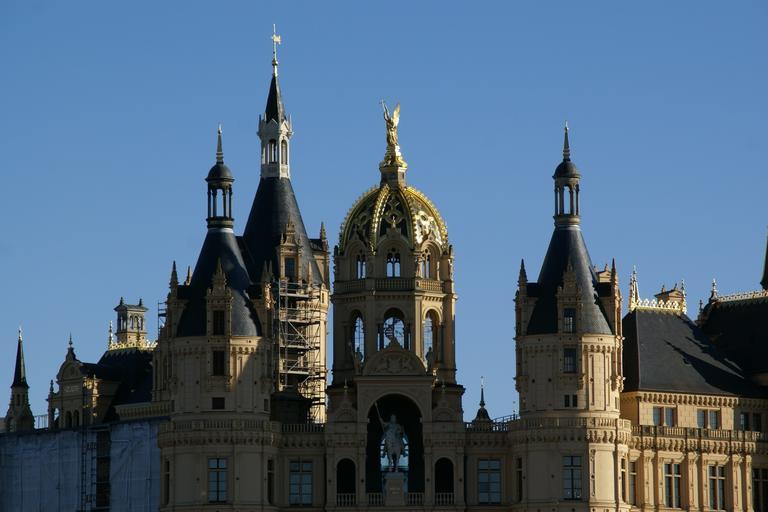 Keywords: schwerin castle germany dome cupola roofs towers turrets mecklenburg architecture palace building historic attraction old sightseeing royal parliament famous touristic exterior mecklenburg-vorpommern