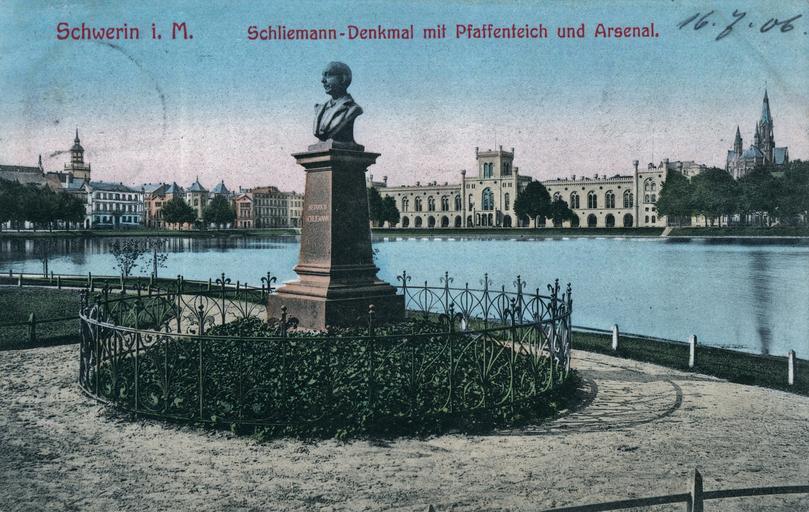 | Keywords: Schwerin Denkmal Heinrich Schliemann (1906).JPG en Memorial to Heinrich Schliemann in Schwerin by sculptor Hugo Berwald unveiled in 1895 de Denkmal Heinrich Schliemann in Schwerin von Bildhauer Hugo Berwald enthüllt 1895 postcard collection Ruchhöft-Plau Hugo Berwald 1895 Heinrich Schliemann memorial Schwerin Hugo Berwald Postcards of monuments and memorials in Mecklenburg-Vorpommern Postcards of Schwerin PD-old | ||||