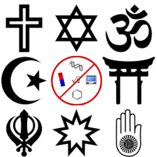 | Keywords: Science is not a Religion.jpg Original file 1 Religious syms svg Religious symbols from the top nine organised faiths of the world according to Major world religions <br>From left to right 1st Row Christian Cross Jewish Star of David Hindu Aumkar 2nd Row Islamic Star and crescent Shinto Torii 3rd Row Sikh Khanda Bahá'í star Jain Ahimsa Symbol Original file 2 AntiMatPhyCheBioCom png Anti-Science including math physics chemistry biology computer science etc This file Science is not a Religion jpg science is NOT a religion The central symbol in the first image was replaced by the second image Religious_syms svg AntiMatPhyCheBioCom png 2011-06-16 22 49 UTC Religious_syms svg User Rursus AntiMatPhyCheBioCom png Forgetmyself derivative work Lauro Chieza de Carvalho <span class signature-talk >talk</span> Fusão dos dois Fusion of both Fusion der beiden Lauro Chieza de Carvalho AntiMatPhyCheBioCom png badJPG Original upload log This image is a derivative work of the following images File Religious_syms svg licensed with PD-user 2011-02-17T22 26 53Z Sertion 450x450 19762 Bytes <nowiki>Cleand the code The problem is not the file it's the cache </nowiki> 2011-02-17T11 46 31Z Mipago 450x450 29119 Bytes <nowiki>Reverted to version as of 14 57 5 June 2007 NEW VERSION DOES NOT WORK </nowiki> 2009-03-08T02 41 09Z Sertion 450x450 48659 Bytes <nowiki>Cleaner version </nowiki> 2007-06-05T14 57 21Z Rursus 450x450 29119 Bytes <nowiki> Image Religious syms png bitmap traced and hand edited with Inkscape User Stalik and User Manop ~~~~~ User Rursus own Forgetmyself 2010-02-05 </nowiki> Uploaded with derivativeFX Symbols of multiple religions Anti logos Science and religion Science symbols |