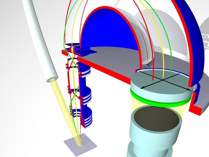 Keywords: Scienta4.jpg Created with Persistence of Vision en electron path trough electron analyser same as File Scienta3 jpg from different angle Own Saiht 2009-06-15 POVray script <pre> // Schnitt durch ein PhotoelectronSpetroskopie Experiment // by Matthias Kreier version 0 8; global_settings assumed_gamma 1 0 default finish ambient 0 1 diffuse 0 9 include colors inc include textures inc camera ultra_wide_angle angle 65 location <18 18 -9> look_at <6 12 0> //plane <0 1 0> -1 pigment color Red //plane <0 0 -1> -50 pigment color White plane <0 5 1 -1> -20 pigment color LightGray // Linsensystem zur Fokussierung und Retardierung declare Linsensystem union difference union box <-2 1 3 0 -2 1> <2 1 3 2 2 1> box <-2 1 3 4 -2 1> <2 1 3 6 2 1> box <-2 1 3 8 -2 1> <2 1 4 0 2 1> box <-2 1 6 8 -2 1> <2 1 7 0 2 1> pigment color Blue cylinder < 0 2 9 0 > <0 7 1 0> 0 81 pigment color Silver cylinder < 0 2 9 0 > <0 7 1 0> 2 pigment color Silver inverse difference union cylinder < 0 4 2 0 > <0 4 4 0> 2 1 cylinder < 0 4 3 0 > <0 6 5 0> 1 4 cylinder < 0 6 4 0 > <0 6 6 0> 2 1 cylinder < 0 7 2 0 > <0 7 4 0> 2 1 cylinder < 0 7 3 0 > <0 9 9 0> 1 4 cylinder < 0 9 8 0 > <0 10 0> 2 1 cylinder < 0 10 2 0 > <0 10 4 0> 2 1 cylinder < 0 10 3 0 > <0 11 2 0> 1 4 cylinder < 0 4 1 0 > <0 11 0> 1 2 pigment color Silver cylinder < 0 10 9 0 > <0 11 3 0> 0 8 pigment color Silver cylinder < 0 4 1 0 > <0 11 3 0> 2 pigment color Silver inverse translate <0 1 0> declare Kugelanalysator union intersection // innere Kugel difference sphere <6 14 0> 4 2 texture Polished_Chrome sphere <6 14 0> 4 pigment color Blue box <1 14 0> <11 19 5> pigment color Red intersection // äußere Kugel difference sphere <6 14 0> 8 pigment color Blue sphere <6 14 0> 7 8 pigment color Silver box <-3 14 0> <15 23 9> pigment color Red difference // Herzog-Platte cylinder < 6 12 5 0 > < 6 13 0 > 9 pigment color LightSteelBlue cylinder < 0 12 4 0> <0 13 1 0> 1 1 pigment color Silver cylinder < 12 12 4 0> <12 13 1 0> 2 3 difference cylinder < 12 12 5 0 > < 12 13 8 0 > 2 4 pigment color Blue cylinder < 12 12 4 0> < 12 13 9 0> 2 2 pigment color Silver intersection // Eingangsspalte union box <-2 13 25 -2> <2 13 35 2> pigment color Blue box <-0 6 13 3 -2> <0 6 13 75 2> pigment color Blue box <-0 2 13 2 -2 1> <0 2 14 1 2 1> pigment color Silver inverse intersection // Eingangsblenden union cylinder < 0 13 85 0 > < 0 13 9 0 > 2 pigment color Blue cylinder < 0 13 1 0 > < 0 13 15 0 > 2 pigment color Blue box <-0 15 13 0 -1> <0 15 14 1 1> pigment color Silver inverse declare Scienta union object Linsensystem pigment color Blue object Kugelanalysator rotate<0 0 0> intersection // Linsensystem und Analysator entlang x aufgeschnitten object Scienta box <-3 2 0> <15 23 9> pigment color Red rotate<0 0 0> intersection union cylinder <12 13 3 0> <12 13 8 0> 2 pigment color CadetBlue // Channelplate cylinder <12 13 0 0> <12 13 2 0> 2 pigment color Green // Phosphorplatte box <9 10 -9> <15 15 9> pigment color rgbf <1 1 1 1> difference // CCD Kamera cylinder <12 9 5 0> <12 11 0> 1 8 pigment color CadetBlue cylinder <12 10 0> <12 11 1 0> 1 6 pigment color Black cylinder <12 9 6 0> <12 8 0> 1 4 pigment color CadetBlue cylinder <12 8 1 0> <12 5 5 0> 1 8 pigment color CadetBlue cone <12 11 0> 1 6 <12 12 95 0> 2 texture pigment rgbf<1 1 0 75 0 97> cylinder <10 13 8 0> <14 13 8 0> 0 03 pigment color Black cone <13 8 13 8 0> 0 07 <14 1 13 8 0> 0 pigment color Black cylinder <12 13 8 -2> <12 13 8 2> 0 03 pigment color Black cone <12 13 8 -1 8> 0 07 <12 13 8 -2 1> 0 pigment color Black // Weg der Elektronen declare Elektron1 union intersection torus 6 0 03 rotate<90 0 0> translate<6 14 0> box <-2 14 -2> <13 23 2> cone < 0 11 0 > 0 06 <0 14 1 0> 0 03 cylinder < 0 5 0 > <0 11 0> 0 06 cone < 0 0 0 > 0 <0 5 0> 0 06 declare Elektron2 union intersection torus 6 0 03 rotate<90 9 0> translate<6 14 0> box <-2 14 -2> <13 23 2> cone < 0 10 99 -0 7 > 0 06 <0 14 1 1> 0 03 cylinder < 0 8 99 -0 7 > <0 11 -0 7> 0 06 cylinder < 0 6 99 0 7 > <0 9 -0 7> 0 06 cylinder < 0 5 49 0 7 > <0 7 0 7> 0 06 // cylinder < 0 5 95 0 9 > <0 11 0 9> 0 06 cone < 0 0 0 > 0 <0 5 5 0 7> 0 06 declare Elektron3 union intersection torus 6 0 03 rotate<90 -10 0> translate<6 14 0> box <-2 14 -2> <13 23 2> cone < 0 10 99 0 7 > 0 06 <0 14 1 -1> 0 03 cylinder < 0 8 99 0 7 > <0 11 0 7> 0 06 cylinder < 0 6 99 -0 7 > <0 9 0 7> 0 06 cylinder < 0 5 49 -0 7 > <0 7 -0 7> 0 06 cone < 0 0 0 > 0 <0 5 5 -0 7> 0 06 object Elektron1 pigment color rgbf <1 1 0 0> object Elektron2 pigment color rgbf <1 0 0 0> object Elektron3 pigment color rgbf <0 1 0 0> box <-1 8 -0 2 -1 8> <1 8 0 1 8> pigment color LightSteelBlue // Sample // einfallender Lichtstrahl He- oder Syncrotron cylinder <-12 12 0> <1 -1 0> 0 5 texture pigment rgbf<1 1 0 6 0 7> difference cylinder <-7 5 7 5 0> <-30 30 0> 1 cylinder <-7 4 7 4 0> <-13 13 0> 0 5 pigment color LightBlue light_source <12 18 -200> color White light_source // <0 26 -20> <18 18 -9> color White / light_source // Rückseite beleuchten <20 30 10> color White / / light_source // Kugel innen Licht <9 21 1 5> color White / </pre> Photoemission spectroscopy |