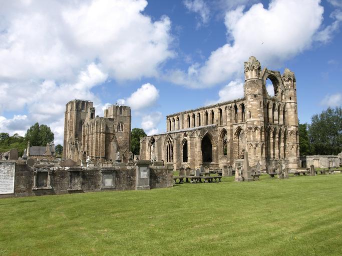 Keywords: scotland ruin elgin cathedral historically architecture church building green clouds stone rush