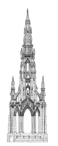 Keywords: Scott monument 004a.jpg en The Walter Scott Monument Princes Street Edinburgh West Elevation sketch Own Alexander Webb 2006-01 Scott Monument