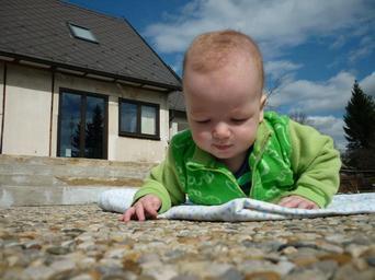 Keywords: scout one traveler stones toddler child baby boy children toddlers happy smile with a smile toy toys face expression interesting examines light sky clouds sun