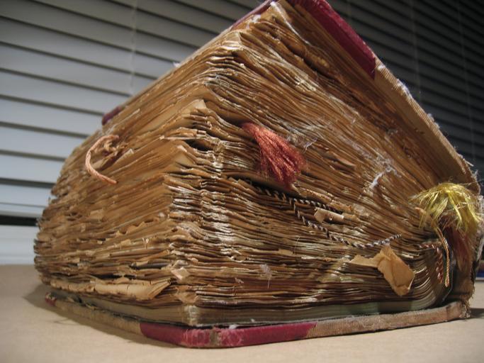 | Keywords: scrapbook grandma book pages One of grandma's two scrapbooks, this one dates from late 30's. I want to preserve it digitally, but I need a better lighting setup to capture the pages properly. One of grandma's two scrapbooks, this one dates from late 30's. I want to preserve it digitally, but I need a better lighting setup to capture the pages properly. |