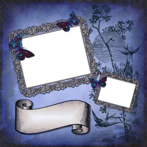 Keywords: scrapbook background page craft frame vintage antique bird swallows blank banner butterfly tree night flying stream creek lily pad transparent transparency