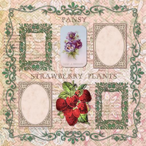 Keywords: scrapbook scrap elements embellishment embossed symbols decoration decorative vine swirl pansy pansies strawberry strawberries fruit flower floral bouquet clipart frame border blank background pattern vintage victorian craft garden plant script words writing decoupage card page text |