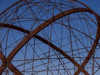 Keywords: sculpture art sphere abstract metal contemporary modern blue sky australia exhibition