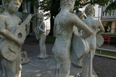 Keywords: sculpture fig statue sculpture fig statue zurich switzerland blind run naked gold grey fountain gitare music play ground earth tree