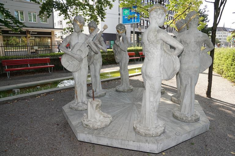 Keywords: sculpture fig statue zurich old people's home play music musician art modern switzerland dance