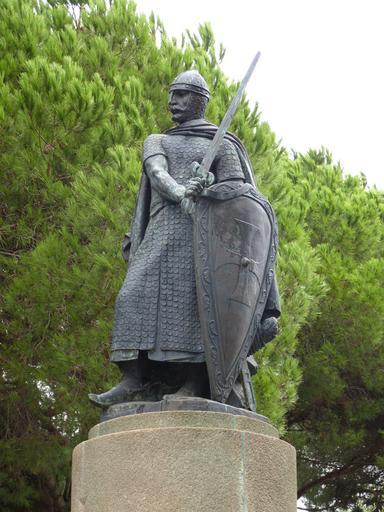 Keywords: sculpture historically knight middle ages swords armor weapon sword man metal harnisch helm ritterruestung castle monument statue bronze lisbon portugal