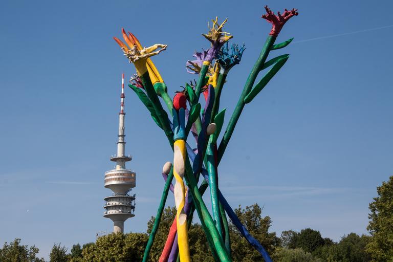 Keywords: sculpture statue wood painted flowers colorful tv tower