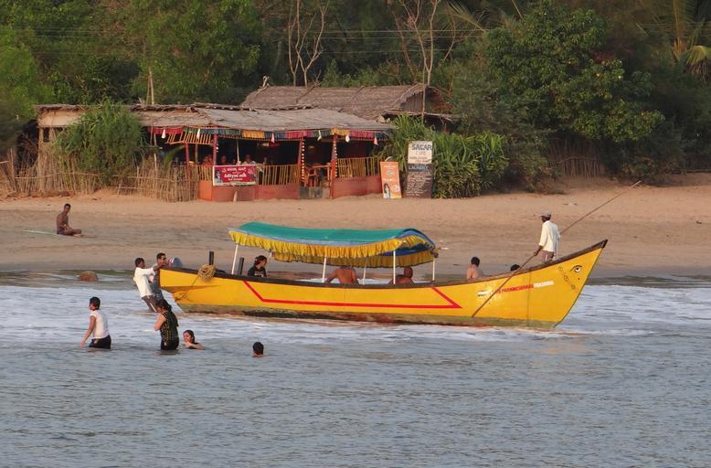 Keywords: sea arabian boat boating beach ocean water frolickers coast tourism gokarna india