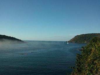 Keywords: sea beach boats ocean water coast island shore mist paradise tourism coastline lagoon scenery seascape sky blue salcombe south england