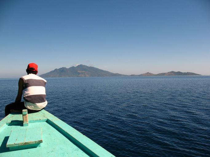 Keywords: sea boat mountain sail sky blue water beautiful