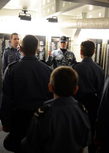 | Keywords: Sea cadet training 150317-N-PX557-080.jpg en 150317-N-PX557-080 FALL RIVER Mass March 17 2015 Chief Yeoman Craig Flowers assigned to U S Naval War College NWC in Newport Rhode Island speaks with sea cadets assigned to Defiant 338 Royal Canadian Sea Cadet Corp from Kemptville Ontario onboard the South Dakota-class battleship USS Massachusetts BB-59 in Fall River Mass Chief petty officers from NWC met the visiting cadets onboard Massachusetts and provided Navy familiarization seamanship and firefighting training U S Navy photo by Chief Mass Communication Specialist James E Foehl/Released 2015-03-17 Chief Petty Officer James Foehl https //www dvidshub net/image/1827683 150317-N-PX557-080 2015-03-21 05 32 FALL RIVER MA US PD-USGov-Military-Navy Firefighting training Images from DoD uploaded by Fæ |