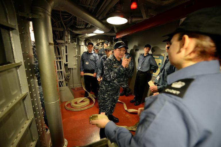 | Keywords: Sea cadet training 150317-N-PX557-208.jpg en 150317-N-PX557-208 FALL RIVER Mass March 17 2015 Chief Navy Counselor Ann Ferguson assigned to U S Naval War College NWC in Newport Rhode Island provides firefighting training to sea cadets assigned to Defiant 338 Royal Canadian Sea Cadet Corp from Kemptville Ontario in damage control central of the South Dakota-class battleship USS Massachusetts BB-59 in Fall River Mass Chief petty officers from NWC met the visiting cadets onboard Massachusetts and provided Navy familiarization seamanship and firefighting training U S Navy photo by Chief Mass Communication Specialist James E Foehl/Released 2015-03-17 Chief Petty Officer James Foehl https //www dvidshub net/image/1827688 150317-N-PX557-208 2015-03-21 05 32 FALL RIVER MA US PD-USGov-Military-Navy Firefighting training Images from DoD uploaded by Fæ |