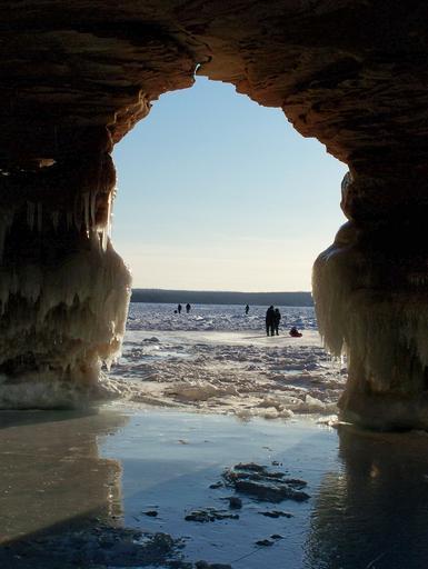 Keywords: Visitors brave the cold weather to explore the ice cave formations at Meyers Beach. NPS photo by Neil Howk sea usa wisconsin islands nps cave apostle