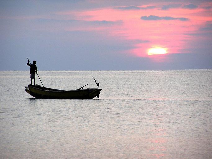 Keywords: sea fishermen sunset boat