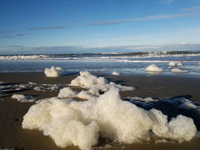 Keywords: sea foam wave beach walk sky blue spray sand water coast north sea holland