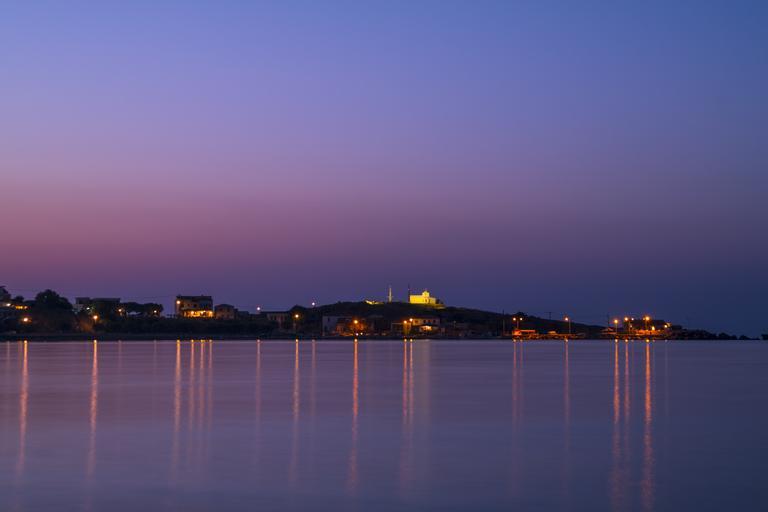 Keywords: sea night church lesbos sky lights