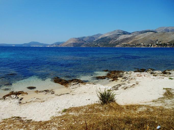 Keywords: sea part sand water blue mountain beach